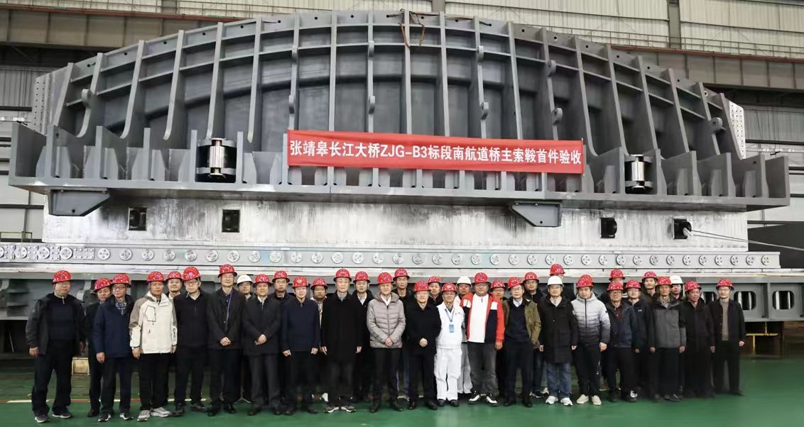 張靖皋長江大橋是目前在建的世界最大跨度懸索橋,全長7859米,其中南航道橋主跨2300米,實(shí)現(xiàn)了中國橋梁從千米跨徑到兩千米跨徑的突破。大橋建設(shè)過程中刷新六項(xiàng)“世界之最”、實(shí)現(xiàn)六項(xiàng)“世界首創(chuàng)”。建成后將大幅縮短張家港、 靖江、如皋三地的通行時(shí)間,極大地促進(jìn)長三角區(qū)域一體化發(fā)展,優(yōu)化長江干線過江通道布局。中船武漢船機(jī)公司承制了張靖皋長江大橋南航道橋主索鞍2套,北航道橋主索鞍4套、散索鞍4套和索夾284套。