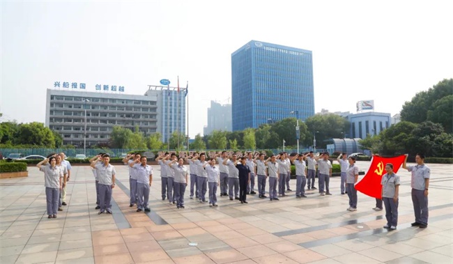 7月1日上午,船機(jī)廣場(chǎng)上驕陽(yáng)映照著黨旗,中國(guó)船舶武漢船機(jī)36名新黨員胸口的黨徽熠熠生輝。在中國(guó)共產(chǎn)黨99歲生日的這一天,他們?cè)邳h旗下第一次莊嚴(yán)宣誓,說出一名共產(chǎn)黨員一生中最重要的承諾。