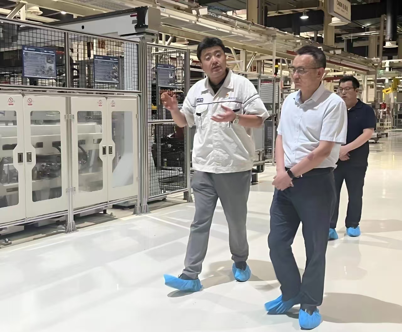程立兵一行參觀了解放動力惠山基地,現(xiàn)場學(xué)習(xí)了智能制造、精益管理和安全生產(chǎn)等方面做法。解放動力惠山基地以“超級綠色”“超級智能”“超級精益”三大特性展示了其高標(biāo)準(zhǔn)和先進(jìn)性,致力于打造“世界領(lǐng)先的重型發(fā)動機智能制造基地”,將精益化和綠色化貫穿生產(chǎn)全過程,實現(xiàn)工廠運行管理智能化。智能制造車間里忙碌的機器人、自動AGV物流小車、智能立體庫、綠色熱試線等引人注目,程立兵一行表示解放動力在智能化改造、數(shù)字化轉(zhuǎn)型、探索綠色低碳可持續(xù)發(fā)展等方面對公司具有較強的借鑒和啟示意義。